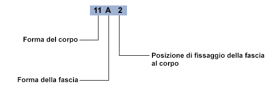 La designazione delle forme usata dalla Molemab Inotech corrisponde alle norme europee FEPA. Oltre a queste, forme speciali possono essere prodotte secondo norme interne. In quasi tutti i casi la forma viene definita da una combinazione di numeri e lettere. Esempio: